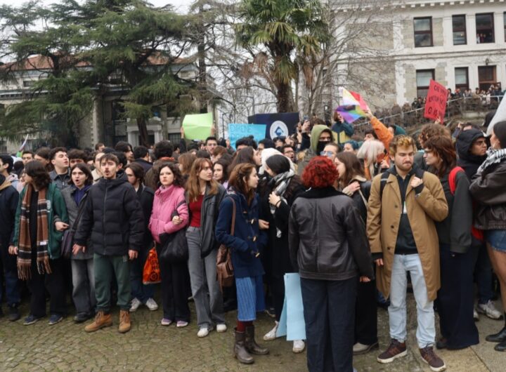 Boğaziçi Üniversitesi öğrencileri, Beşiktaş’taki Güney Kampüs’te kayyum rektör Naci İnci’nin kulüp kapatmalarını protesto etmek amacıyla basın açıklaması...
